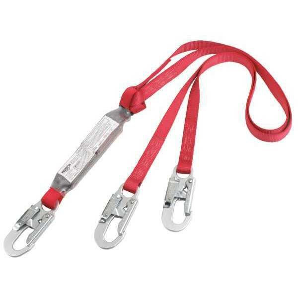 Shock-Absorbing Lanyard, Color Red, Visual Load Indicator Yes, Hardware Material Steel, Shock-Absorbing Lanyard Material Polyester, Shock Absorbing Type Shock Pack, Number of Legs 2, Weight Capacity 310 lb, Anchorage End Connection Type Snap Hook, Adjustable Length No, Harness End Connection Snap Hook, Anchorage End Connection Material Steel, Harness End Connection Material Steel, Maximum Working Length 6 ft, ANSI Standards Met ANSI A10.32, OSHA Standards Met OSHA 1910.66, OSHA 1926.502