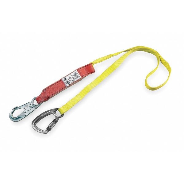 Shock-Absorbing Lanyard, Color Yellow, Visual Load Indicator Yes, Hardware Material Steel, Number of Legs 1, Weight Capacity 310 lb, Maximum Working Length 6 ft