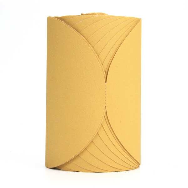 PSA Sanding Disc Roll, Abrasive Type Coated, Abrasive Material Aluminum Oxide, Backing Material Film, Backing Weight 2 mil, Coating Coverage Open, Grit P120, Overall Diameter 6 in, Product Type PSA Disc Roll, Series 255L, Resistance Properties Tear, Number of Vacuum Holes Non-Vacuum, Color Gold, Grade Coarse, Package Quantity 4