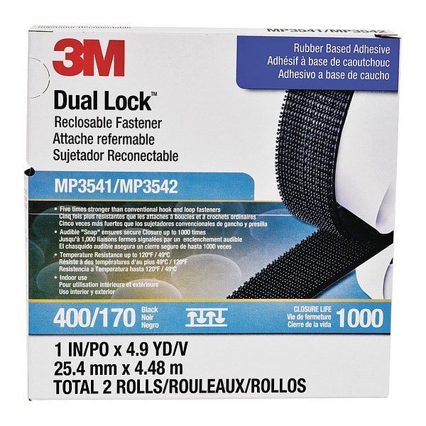 Reclosable Fastener, Acrylic Adhesive, 4.9 yds, 1 in W, Black, 5 PK