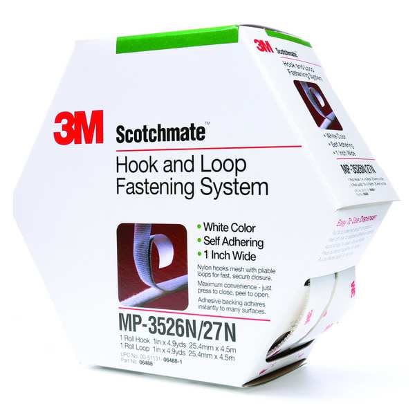 Hook-and-Loop Fastener, Hook-and-Loop, Hook and Loop Shape Roll, Length 15 ft, Width 1 in, Color White, Flame Retardant No, Backing Material Nylon, Shear Strength 22 lbf/sq in, Adhesive Type Rubber, Characteristics Industrial Hook, Pressure Sensitive