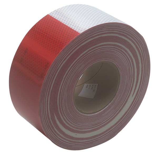 Premium Grade Reflective Tape, Reflective Color Red, White, Width 3 in, Length 50 yd, Adhesive Material Acrylic, Backing Material Retroreflective Microprismatic Material, Thickness 18 mil, Adhesion Strength 2.5 lb/in (FRP), 3.0 lb/in (Tedlar(R)), 3.0 lb/in (Prepainted Panel), 3.5 lb/in (Aluminum Rail), 5.3 lb/in (Degreased Aluminum), 6.0 lb/in (Stainless Steel), Outdoor