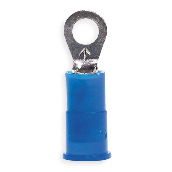 Ring Terminal, Insulation Color Blue, Insulation Coverage Partial Coverage, Insulation Material Nylon, Maximum Operating Temperature 221 Degrees F, Maximum Voltage 1,000 V, Minimum Wire Size 16 AWG, Maximum Wire Size 14 AWG, Termination Style Crimp, Tongue Width 0.47 in, Contact Finish Tin, Contact Material Copper, Standards CSA Certified, UL Listed, Barrel Inside Diameter 0.09 in, Barrel Length 0.25 in, Barrel Style Butted