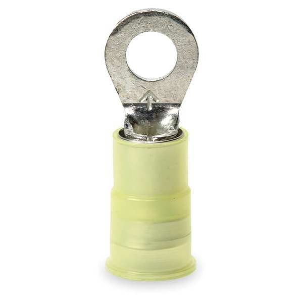 Ring Terminal, #6 Stud Size, 10 AWG, 1,000 V, Nylon Insulated, Yellow, Crimp Termination Only