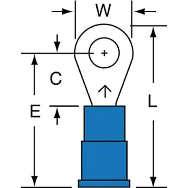 Ring Terminal, Insulation Color Blue, Standards CSA Certified, UL Listed, Insulation Type Vinyl, Overall Length 0.9 in, Package Quantity 1000