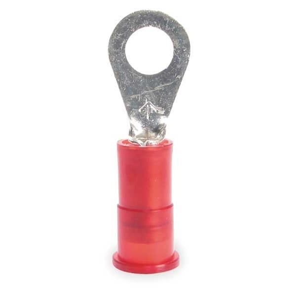 Ring Terminal, #8 Stud Size, 18 AWG, 1,000 V, Nylon Insulated, Red, Crimp Termination Only, 100 PK