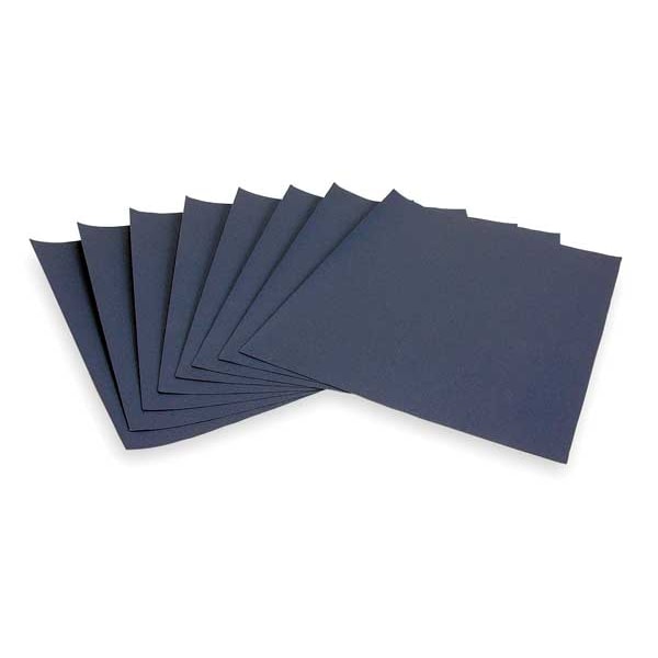 Sanding Sheet, Abrasive Type Coated, Abrasive Material Silicon Carbide, Backing Material Paper, Backing Weight A, Coating Coverage Closed, Grit 320, Series 413Q, Overall Length 11 in, Overall Width 9 in, Resistance Properties Heat, Water, Attachment Type Clip, Color Black, Grade Very Fine