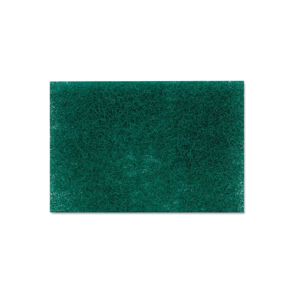 Use in the kitchen to replace scrapers, steel wool and metal sponges. Tough fibers and abrasives clean grills and ovens and remove baked-on food from pots and pans. Scours cookware, scrubs floors, and cleans kitchens and cooking equipment. Made with durable synthetic fibers, abrasives and resin. Resists degradation from exposure to hot water and detergents. Can be used wet or dry. Can be used wet or dry. Tough synthetic fibers, abrasives and resins clean grills and ovens. Removes baked-on foods from pots and pans, replacing scrapers, steel wool and metal sponges. Also scrubs floors, and cleans kitchens and cooking equipment. Can be used wet or dry. Scouring pads/sticks type: pad; materials: synthetic fiber; abrasives; resin; size w x l: 6in x 9in; colors: green.