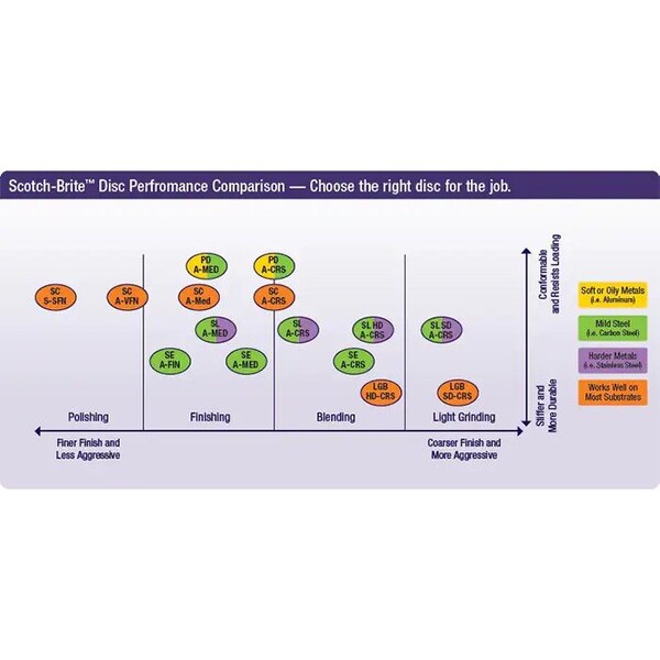 Scotch-Brite Roloc Surface Conditioning Discs combine durable, non-woven disc with the efficiency of the 3M Roloc quick-change attachment system for an effective disc that cleans, finishes, blends, and deburrs. The non-woven fiber construction conforms well to help preserve irregular or contoured surfaces and the Roloc backing supports the disc for aggressive cutting.