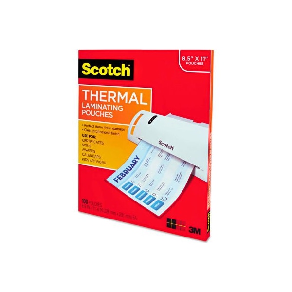 Scotch letter size thermal laminating pouches, 3 mil, 11 1/2 x 9, 100 per pack scotch thermal laminating pouches are made from polyester film to be strong, moisture resistant and to protect documents, pictures, cards and more. this product arrives to most customers in 2-3 business days.
