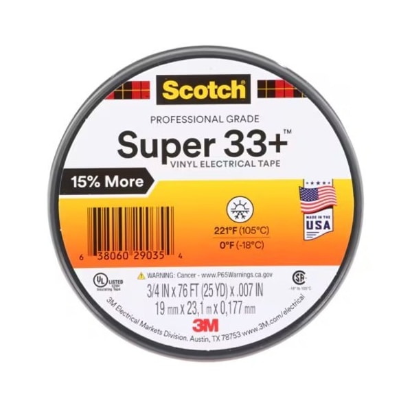 Scotch Super 33+ Vinyl Electrl Tape, 3/4 In X 76 Ft, 1" Core, 100PK
