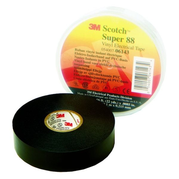Scotch Super 88 Vinyl Electrical Tape, 6143-BA-10, 3/4 inx66 ftx0.0085 in