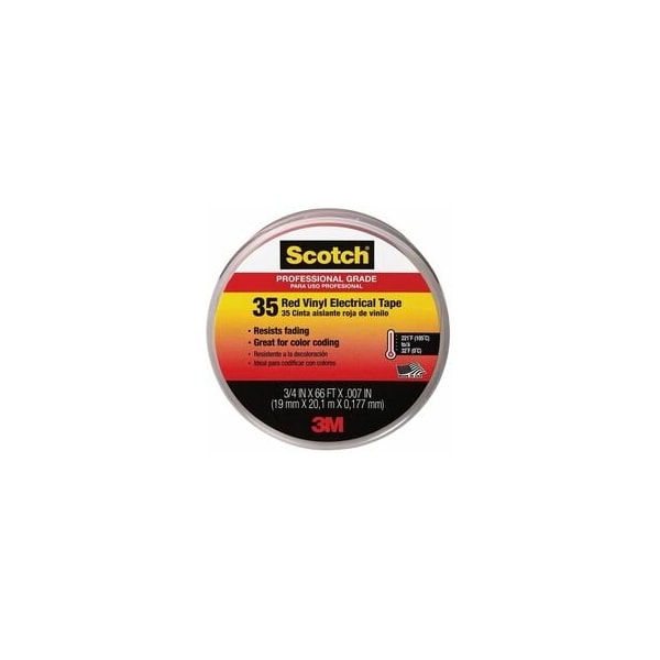 3M Scotch 35 Vinyl Electrical Color Coding Tape, 3" Core, 0.75" x 66 ft, Red