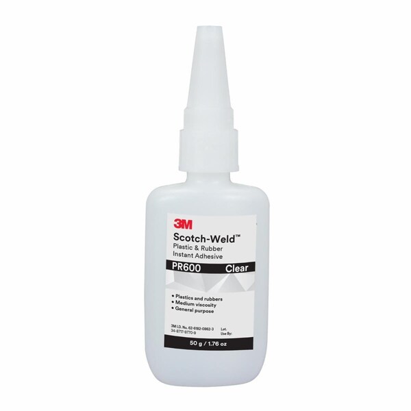 3M SCOTCH-WELD PLASTIC & RUBBER INSTANT ADHESIVE PR600 IS A MEDIUM VISCOSITY INSTANT ADHESIVE. THE PR600 INSTANT ADHESIVE IS FORMULATED TO GIVE EXCEPTIONAL PERFORMANCE ON DIFFICULT-TO-BOND SUBSTRATES, SUCH AS EPDM, NYLON, POLYPROPYLENE AND POLYETHYLENE WITH USE OF AN APPROPRIATE PRIMER. ONCE APPLIED, THE GLUE HAS FAST HANDLING TIME AND CURE TO KEEP JOBS MOVING QUICKLY.