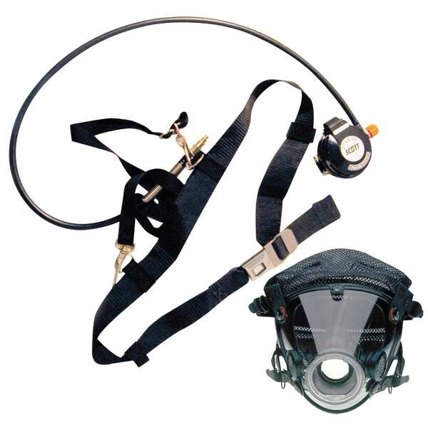 Pressure Demand Airline Respirator, Type C, Includes E-Z Flo Modulair Regulator, Medium AV-2000 Full-Facepiece Respirator with Polyester Head Harness, Nylon Harness, Full Facepiece, Headgear Size M, Scott E-Z Airline