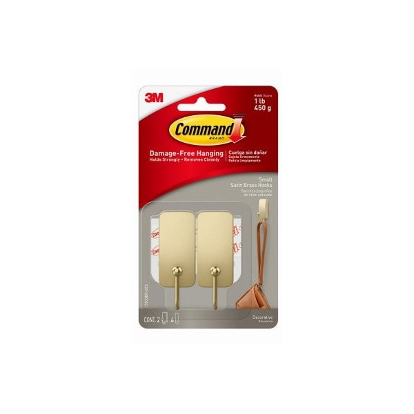 Command Small Satin Brass Hooks 2 hooks 4 strips