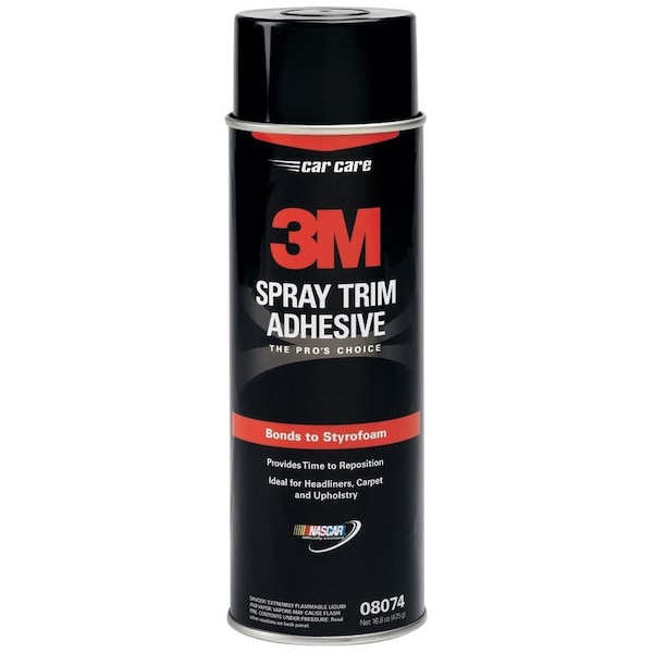 Spray Adhesive, Adhesive Color Yellow, Container Size 16.8 fl oz, Container Type Aerosol Can, Product Type Spray Adhesive, Series 08074, Spray Pattern Mist, Working Time 5 sec, Features Aggressive Tack, Fast Strength Buildup, Low Mist Formulation, Full Cure Time 30 min, Heat Resistant No, High Tack Yes, Interior/Exterior Interior Only, Low Odor No, VOC Content Weight 503 g/L, Water Resistance Not Water-Resistant, Materials Bonded Metal, Plastic, Rubber