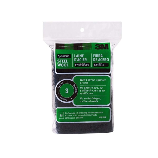 3M Synthetic Steel Wool Pads will not shred, splinter or rust. Rinse and reuse. Compatible with water-based strippers and finishes. Replaces steel wool.