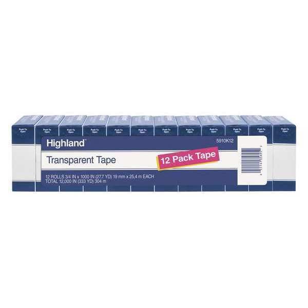 Transparent Tape,0.75in W x 28yd L,PK12