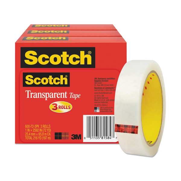 Transparent Tape, 1 x 2592 in., PK3