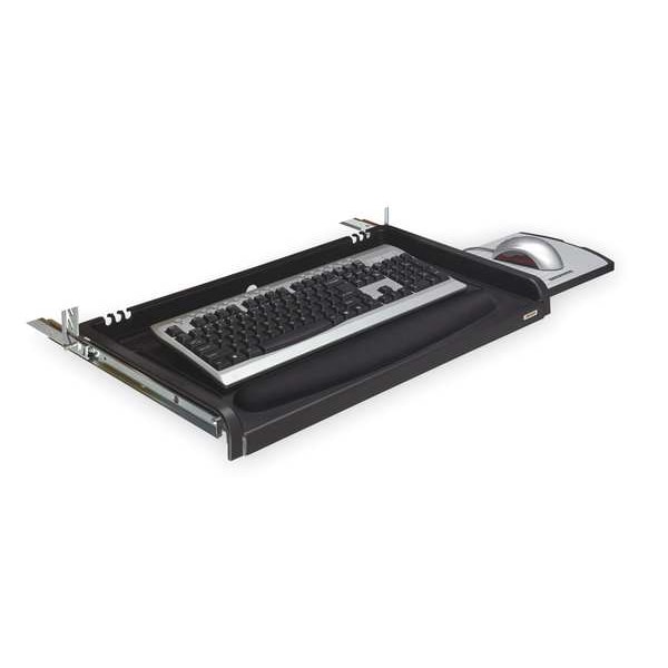 Under-Desk Keyboard Drawer, Color Black, For Use With All Standard Desktops, Track Length 24 in, Features Adjustable, Includes Wrist Support