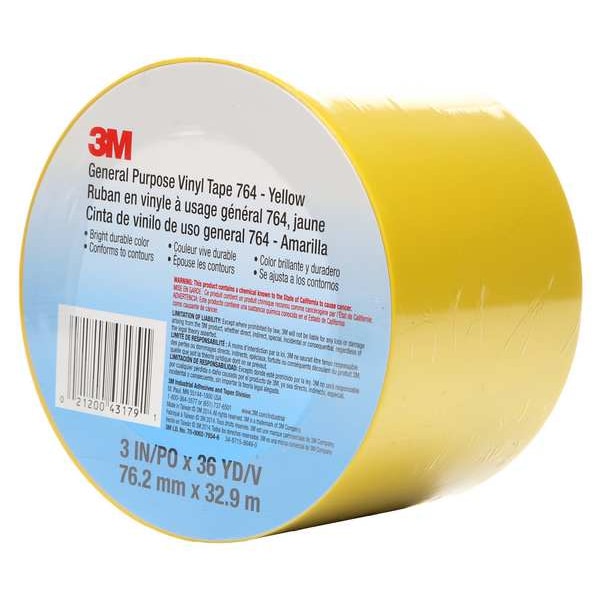 Vinyl Tape, 3" x 36 yd., Yellow