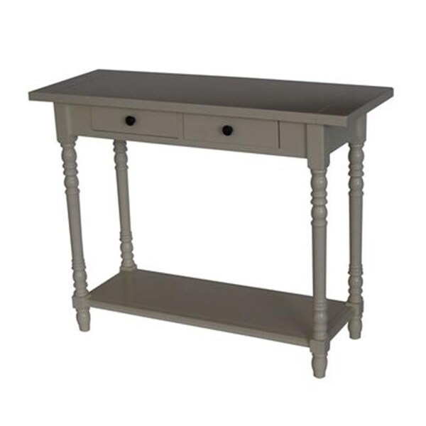 Made of solid wood and wood veneers this is the perfect foyer table for a smaller space. The drawer fronts are accented with two metal pull knobs. The hand crafted legs are sculpted with a decorative pattern all the way to the foot of the leg. The rectangle shaped top gives the table a finished look. This table is a great addition to any room in the house and also works great as a sofa table. Some assembly is required. Materials: Solid Wood/Wood Veneers. Width: 3 feet 13⁄4". Height: 291⁄2". Back To Front: 133⁄4". Finish: Buttermilk.