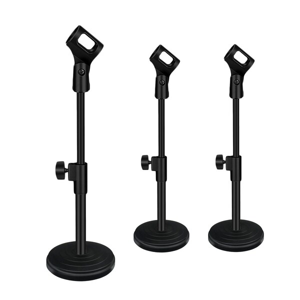 3 Pack Desktop Microphone Mic Stand Mini Round Base Boom Arm Height Adjustable (Discontinued)