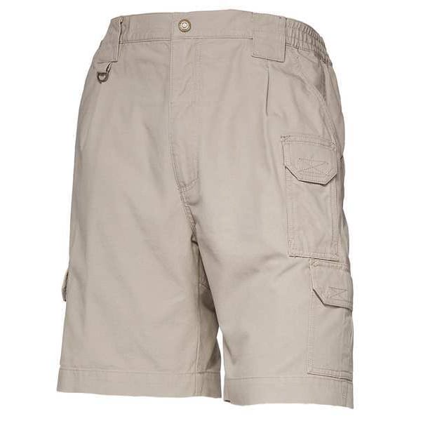 Tactical Shorts, Size 44, Khaki, Fits Waist Size 44 In., Garment Style Tactical Shorts, Inseam 9 In., Material 100 Percent Cotton Tactical Canvas (Pocketing), 80 Percent Polyester, 20 Percent Cotton Plain Weave, Binding (3) Melamine Buttons (Center Front Placket), Fabric Weight 8.5 oz., Pockets 8, Type Tactical Shorts