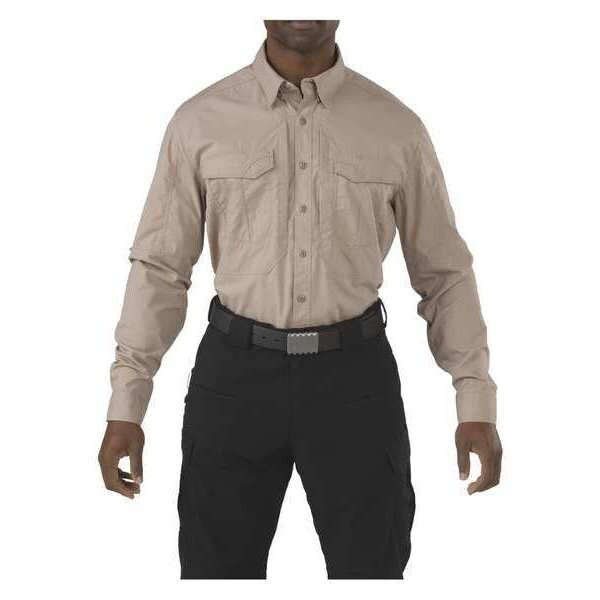 Stryke Shirt, Size L, Color Khaki, Material 38 Percent Cotton, 62 Percent Polyester, Length 32 In., Fits Chest Size 42 In. to 44 In., Sleeve Length Long Sleeve, Neck Size 16 In. to 16-1/2 In., Closure Type Button, Fabric Polyester/Cotton, Pockets 4, Binding 4-Hole Melamine Buttons, Fabric Weight 4.84 oz.