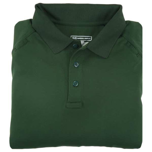 Tactical Polo Shirt, 100% Polyester, Button, 2 Pocket(s), Dark Green, M