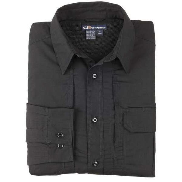 Tactical Shirt, Size L, Color Black, Material 35 Percent Cotton, 65 Percent Polyester, Fits Chest Size 42 in to 44 in, Sleeve Length Long Sleeve, Neck Size 16 1/2 in, Closure Type Button, Fabric Cotton, Polyester, Pockets 4, Binding Button, Fabric Weight 4.2 oz, Features Adjustable Cuffs, Cape-Back Vent, Chest Pockets with Pen Slots, Locker Loop on Inner Collar, Pen Pocket on Left Sleeve, Reinforced Elbows, Roll-Up Sleeve-Keeper, Underarm Eyelets, Underarm Gussets, Type Collared Work Shirt