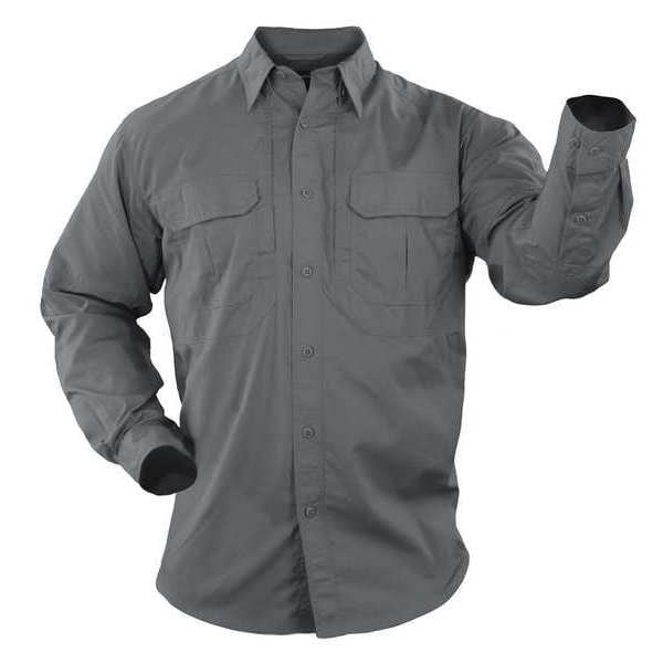 Tactical Shirt, 35% Cotton, 65% Polyester, Button, 4 Pocket(s), Storm Gray, M