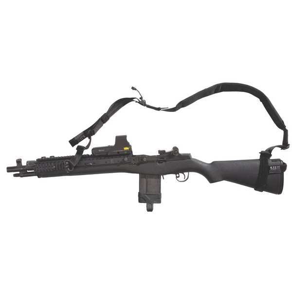 Two Point Padded Sling, Size Universal, Color Black, Material Nylon Webbing, Features Quick-Release Snap-Shackle, Enhanced Shoulder Padding, Traction in Wet Climates, High Impact Clips, Fits All Rifles, Shot Guns, For Use With Rifles, Shot Guns