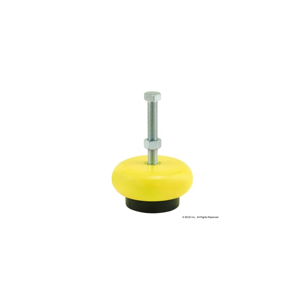 Anti-Vibration Leveling Foot, Inch, For Profile Type Quad, Wheel Diameter Not Applicable, Includes Brakes Not Applicable, Fastener Thread Size 3/8 In.-16, Rigid, Powder-Coated, Fastener Thread Length 3 in, Overall Height 3 3/4 in, Rubber/Steel, 10 Series, 15 Series, Includes Fasteners Yes, Load Capacity 700 lb, Overall Depth 3 in, Overall Width 3 in, Adjustable Yes, Black/Yellow