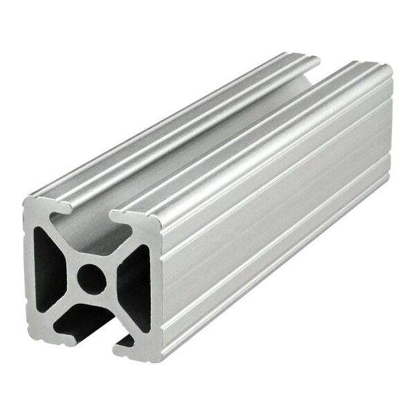 T-Slot Profile, Inch, Single, Silver, Weight per Unit Length 0.04 lb-in, Bore Diameter 7/32 in, Extrusion Texture Grooved, Nominal Length 20 ft, Aluminum, Number of Open Slots 2, Profile Height 1 in, Profile Width 1 in, Overall Length 242 in, 10 Series, Square, Slot Width 0.26 in, Yield Strength 25,000 psi, Relative Profile Weight Standard, Slot Location Opposite-Sides, Finish Anodized, Temper T6