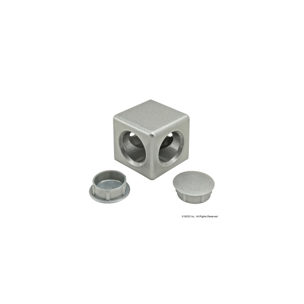 Light Squared Corner Connector, Lacquer, Overall Height 30 mm, Threaded, 9 mm, Flat Head Socket Cap Screw (FHSCS), Fastener Thread Length 20 mm, Aluminum, Fastener Thread Size M8, System of Measurement Metric, Light Squared Corner Connector, For Profile Type Double, Includes Cover Caps