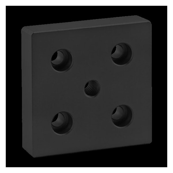 Base Plate, Inch, For Profile Type Quad, Wheel Diameter Not Applicable, Caster Mounting Type Stem, Includes Brakes Not Applicable, Fastener Thread Size 7/16 In.-14, Not Applicable, Anodized, Fastener Thread Length Not Applicable, Overall Height 3/4 in, Aluminum, 15 Series, Includes Fasteners No, Load Capacity Not Applicable, Overall Depth 3 in, Overall Width 3 in, Adjustable No, Black