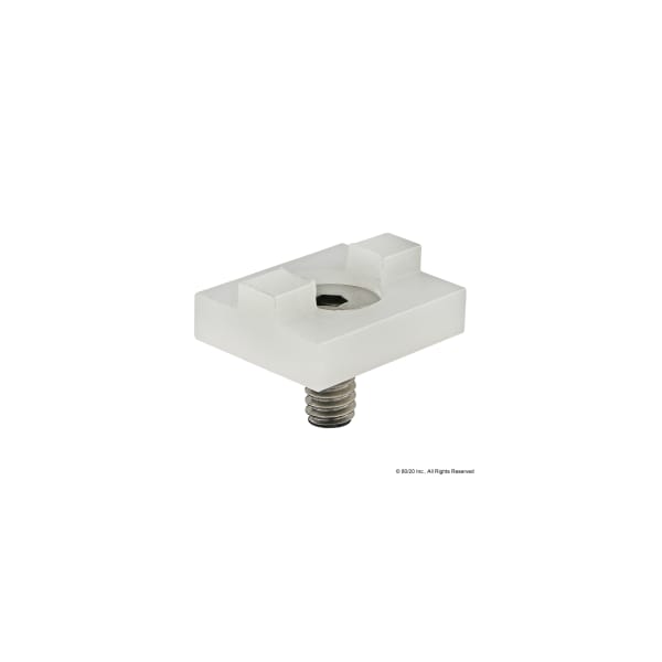 Sliding Door Glide, 10 Series, Inch, Overall Height 7/8 in, Overall Length 1 in, Overall Width 13/16 in, UHMW, Natural, Includes Fasteners Yes, T-Slot, Fastener Thread Size 1/4 In.-20, Fastener Thread Length 5/8 in, Includes Stainless Steel Mounting Screw