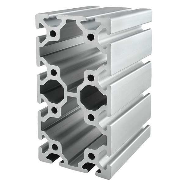 T-Slot, Metric, Quad, Silver, Weight per Unit Length 8.7 lb-ft, Bore Diameter 6.81 mm, Extrusion Texture Smooth, Nominal Length 13 ft, Aluminum, Number of Open Slots 12, Profile Height 160 mm, Profile Width 80 mm, Overall Length 4 m, 40 Series, Rectangle, Slot Width 8.1 mm, Yield Strength 241.1 N/mm�, Relative Profile Weight Standard, Slot Location Adjacent-Sides, Finish Anodized, Temper T6