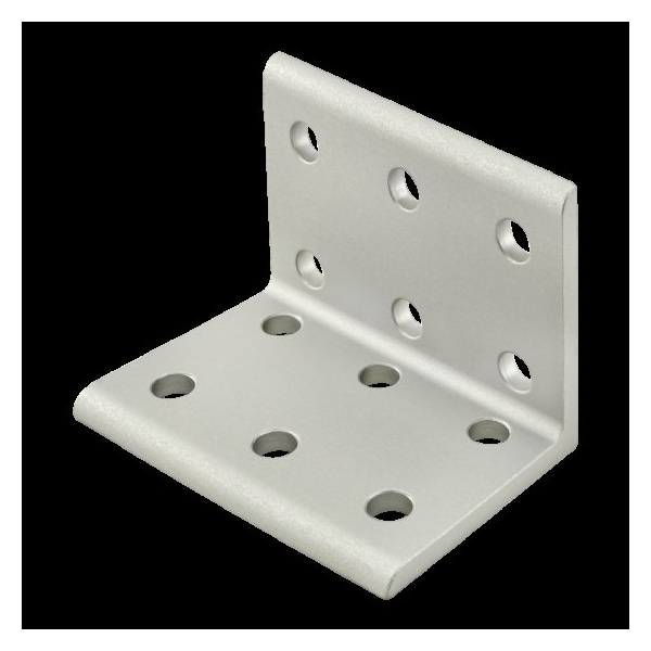 Inside Corner Bracket, Silver, Anodized, Number of Mounting Holes 12, Overall Height 2 in, Slide-In, 9/32 in, Black BHSCS and Slide-In Economy T-Nut Centered Thread, Overall Length 2 7/8 in, Overall Width 2 in, Fastener Thread Length 1/2 in, Aluminum, Fastener Thread Size 1/4 In.-20, Inside Corner Bracket Style Wide, System of Measurement Inch, Inside Corner Bracket