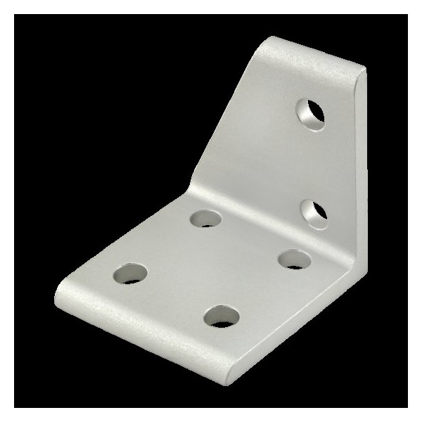 Inside Corner Bracket, Silver, Anodized, Number of Mounting Holes 6, Overall Height 2 in, Slide-In, 9/32 in, Black BHSCS and Slide-In Economy T-Nut Centered Thread, Overall Length 1 7/8 in, Overall Width 2 in, Fastener Thread Length 1/2 in, Aluminum, Fastener Thread Size 1/4 In.-20, Inside Corner Bracket Style 90 Degrees Right Aligned, System of Measurement Inch, Inside Corner Bracket