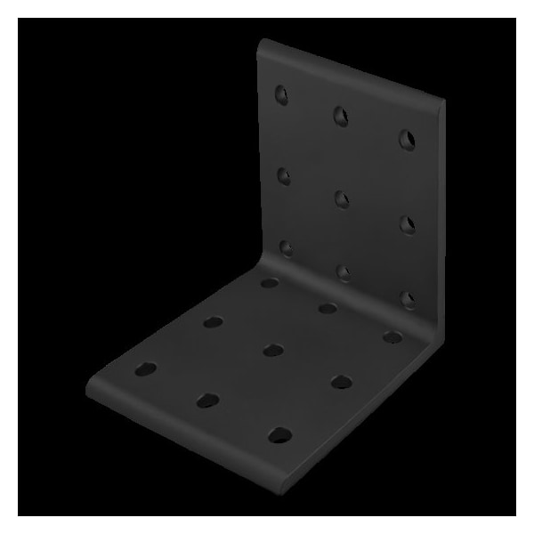 Inside Corner Bracket, Black, Anodized, Number of Mounting Holes 18, Overall Height 4 1/2 in, Slide-In, 21/64 in, Black FBHSCS with Slide-In Economy T-Nut Offset Thread, Overall Length 4 5/16 in, Overall Width 4 1/2 in, Fastener Thread Length 687/1000 in, Aluminum, Fastener Thread Size 5/16 In.-18, Inside Corner Bracket Style 90 Degrees Angle, System of Measurement Inch, Inside Corner Bracket