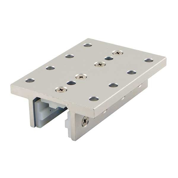 Linear Bearing, Standard Linear, Overall Height 1 7/32 in, Overall Length 4 in, Overall Width 2 15/16 in, Housing Material Aluminum, Mounting Hole Diameter 17/64 in, Anodized, Silver, System of Measurement Inch, 10 Series, Double Flanged, For Number of Slots 3, Standard, Flange Thickness 5/16 in, Pad Material UHMW Plastic, Compatible Brand and Series 10 Series