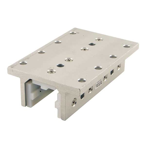 Linear Bearing, Standard Linear, Overall Height 1 7/8 in, Overall Length 6 in, Overall Width 4 in, Housing Material Aluminum, Mounting Hole Diameter 21/64 in, Anodized, Silver, System of Measurement Inch, 15 Series, Double Flanged, For Number of Slots 3, Standard, Flange Thickness 3/8 in, Pad Material UHMW Plastic, Compatible Brand and Series 15 Series
