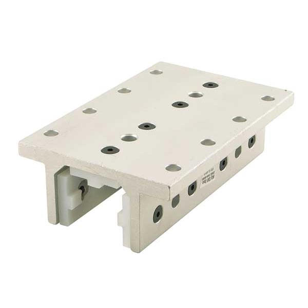 Linear Bearing, Standard Linear, Overall Height 1 7/8 in, Overall Length 6 in, Overall Width 4 in, Housing Material Aluminum, Mounting Hole Diameter 21/64 in, Anodized, Silver, System of Measurement Inch, 15 Series, Double Flanged, For Number of Slots 3, High-Cycle, Flange Thickness 3/8 in, Pad Material UHMW Plastic, Compatible Brand and Series 15 Series