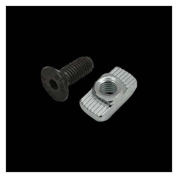 Bolt Assembly, Zinc-Plated, Fastener Thread Size M5, Fastener Thread Length 14 mm, T-Nut, Flat Head Socket Cap, Drop-In, Metric