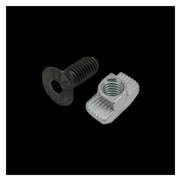 Bolt Assembly, Zinc-Plated, Fastener Thread Size M6, Fastener Thread Length 16 mm, T-Nut, Flat Head Socket Cap, Drop-In, Metric