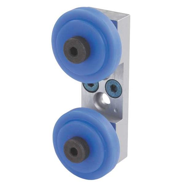 Roller Wheel Bracket Assembly, Carriage Height 21 mm, Carriage Length 163.3 mm, Carriage Width 80 mm, Carriage Material Aluminum, Roller Material Nylon, Requires Lubrication Lubricant Not Required, Carriage Type Roller, For Use With Lubricated Bushings/Ball Bearings, Series 40, Carriage Finish Anodized, Roller Finish Anodized, System of Measurement Metric