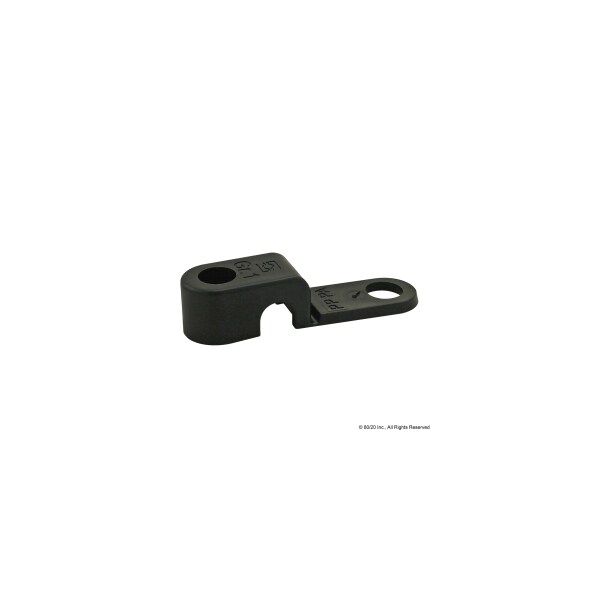 Single Cable and Tube Clamp, Plastic, Matte, Overall Height 10.5 mm, Overall Length 45 mm, Overall Width 12 mm, Mounting Hole Diameter 6.8 mm, 7 mm, Black, Attachment Type Bolt-On, Number of Mounting Holes 2, Includes Fasteners No, System of Measurement Metric, For Profile Type Single, 25 Series, 40 Series, Compatible Brand and Series 80/20 25 Series, 80/20 40 Series, Compatible Manufacturer Model Number 75-3415